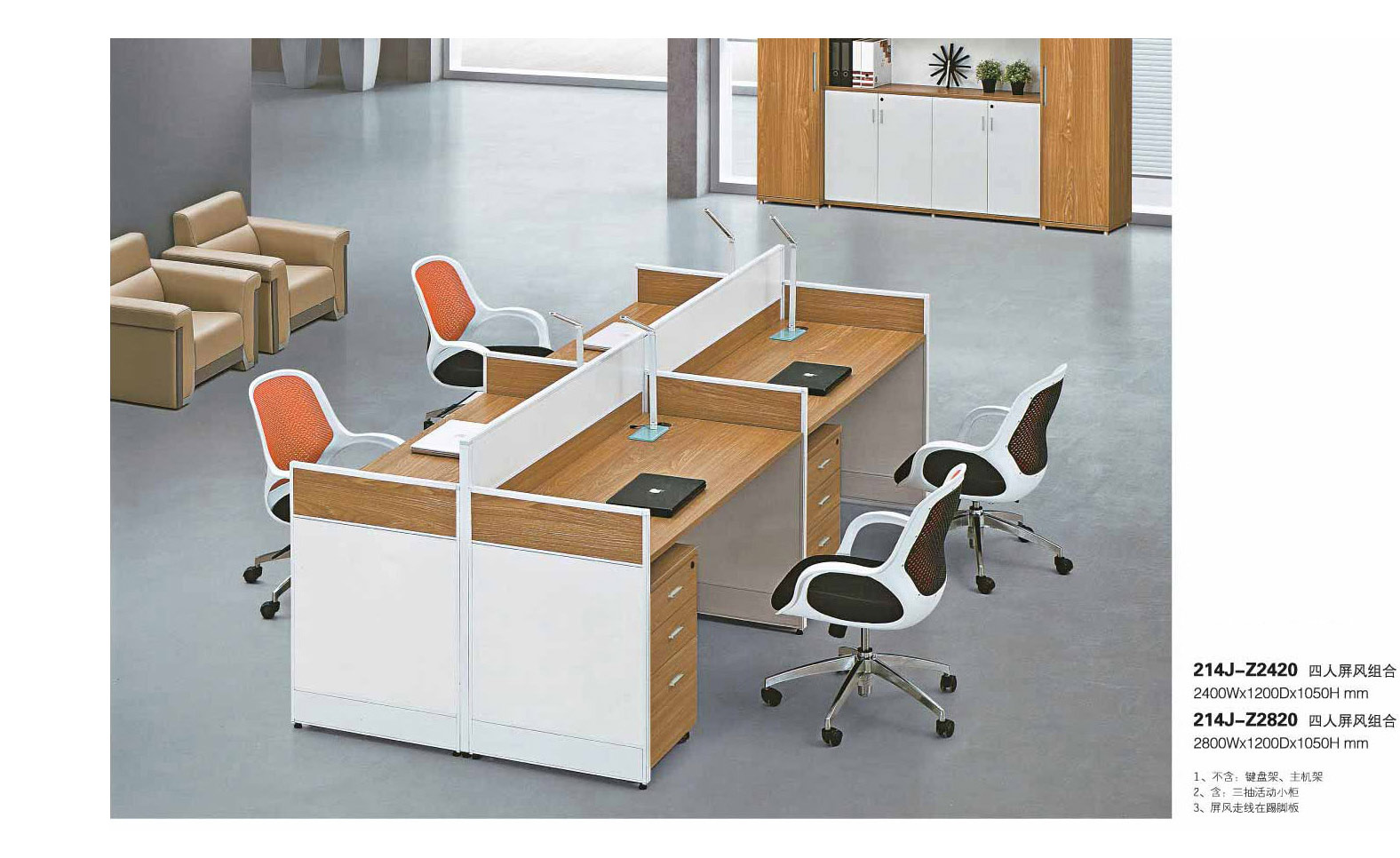 ①四人屏风卡位办公桌组合